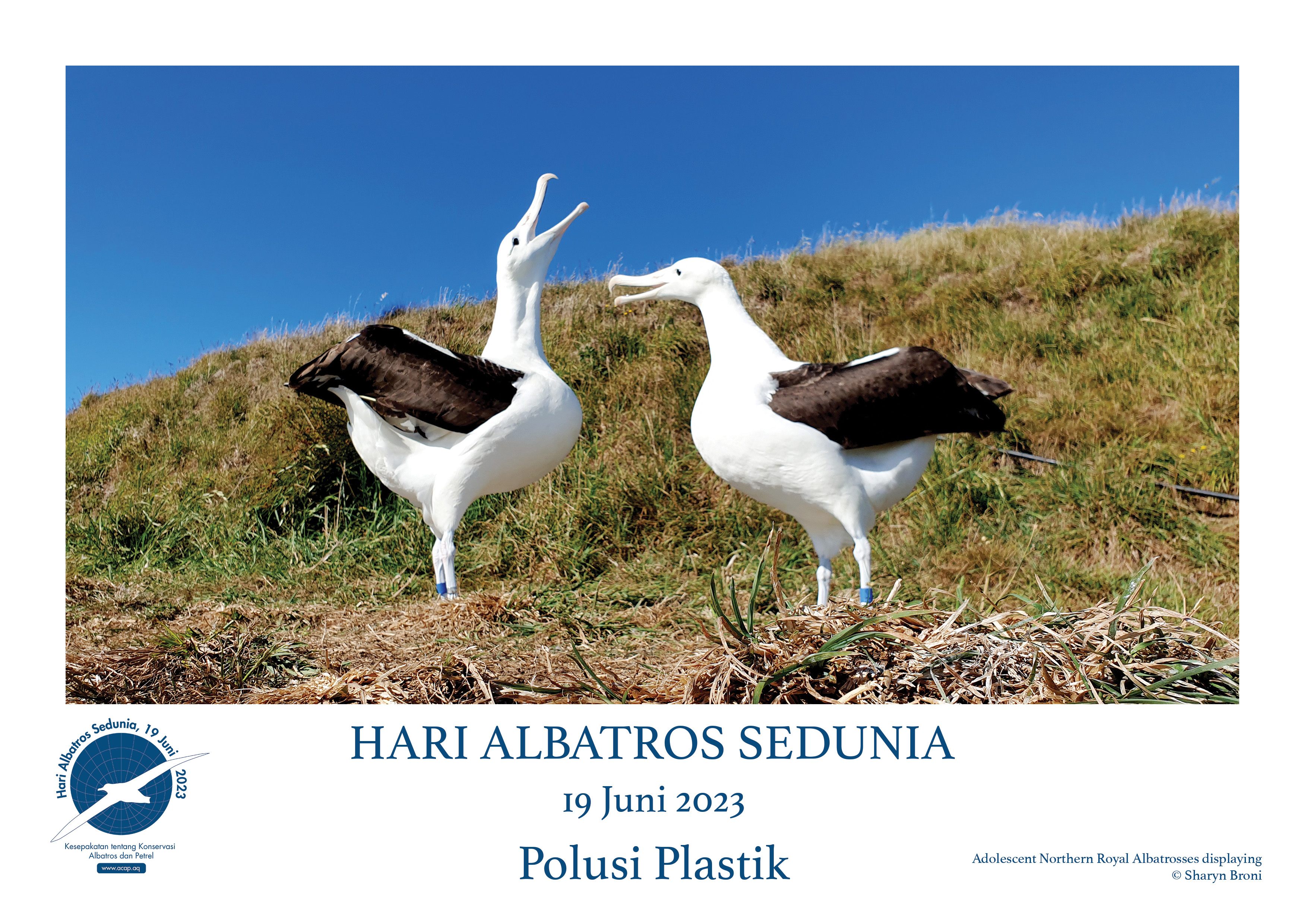 The 12 posters in English, French, Indonesian. Japanese, Korean, Portuguese and Spanish, and in Simplified and Traditional Chinese, are freely available below for printing in support of World Albatross Day on 19 June. ACAP requests it be acknowledged in their use for conservation purposes. They should not be used for financial gain.